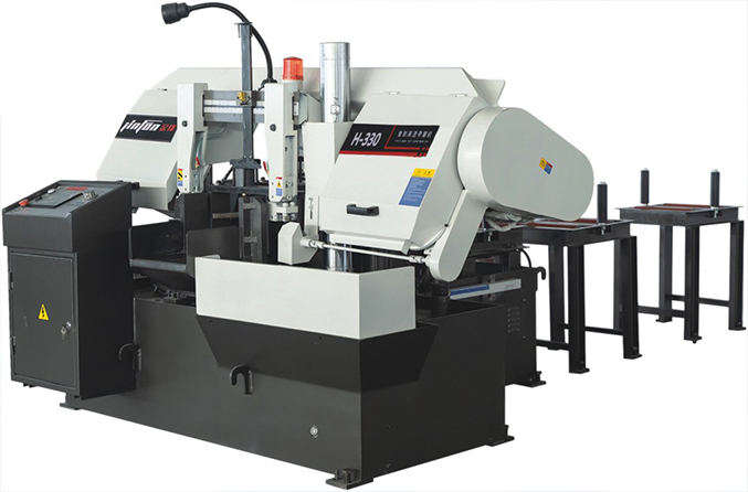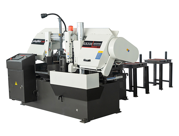 其次,卧式带锯床是水平送料,数控卧式带锯床通常搭配料架使用。操作人员只需将工件放置到料架上,即可实现自动进给。极大降低了工人的劳动强度。