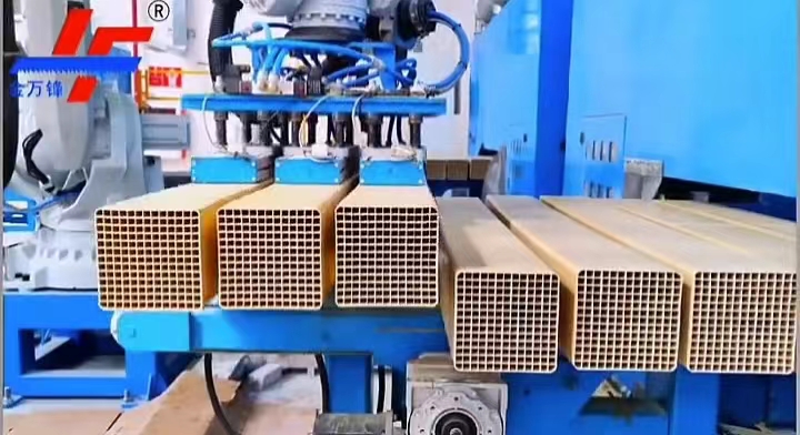 济南北方金锋锯业有限公司推出的V-200催化剂专用锯床,采用创新双头锯切设计,专用于脱硝催化剂、蜂窝式脱硝催化剂等材料的高精度切割加工。为提升自动化水平,V-200特别配置独立机械手,实现规律、快速、精准的上下料操作,有效替代传统流水线配置,显著降低设备投入与运行成本,大幅提升锯切加工效率。