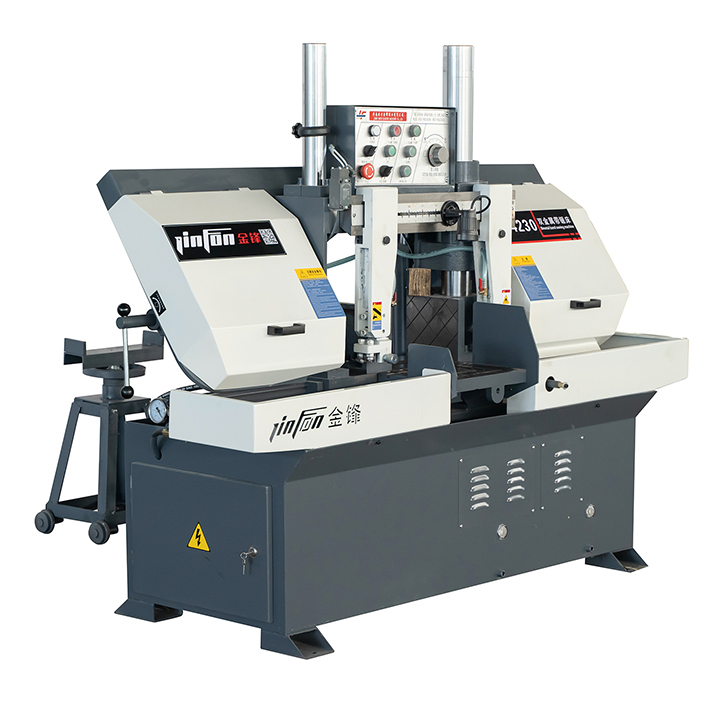 金锋锯业生产的G-500旋转角度锯床能够在0到-45度范围内实现快速精准锯切。该机型采用坚固的双立柱结构,确保了在锯切时坚固稳定,实现高效、精准锯切。设备锯带导向座结构合理,保证了导向精度,延长了锯带的使用寿命。锯床采用密封独特的减速机系统,配有涡轮机构,保证了锯带运转的稳定。它还采用切削行程开关控制,可随时根据工件的大小调整切削进程,进一步大幅提高了工作效率。