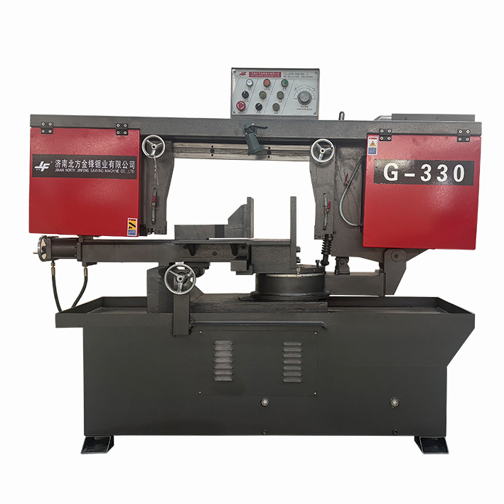 G-330是一款小型旋转角度锯床,在切割物料时,所切割的物料不动,锯架可正向旋转0°-45°或反向旋转0°-60°,适合锯切有角度要求的各类角钢、圆钢、矩形管等。这款锯床引进和吸收国外同类锯床的性能特点,液压平衡油缸,高强度平衡弹簧及液压无极调速,实现高效、精准锯切。本机拥有精巧紧凑的外观设计,有效减少对车间面积的占用。同时,其轻量化结构确保了搬运移动便携,可根据生产需求灵活部署。G-330角度锯床还可选配数控转角,自动送料系统,实现自动化切割,不仅节省了人力,还使锯切更加精确、生产效率大大增加。