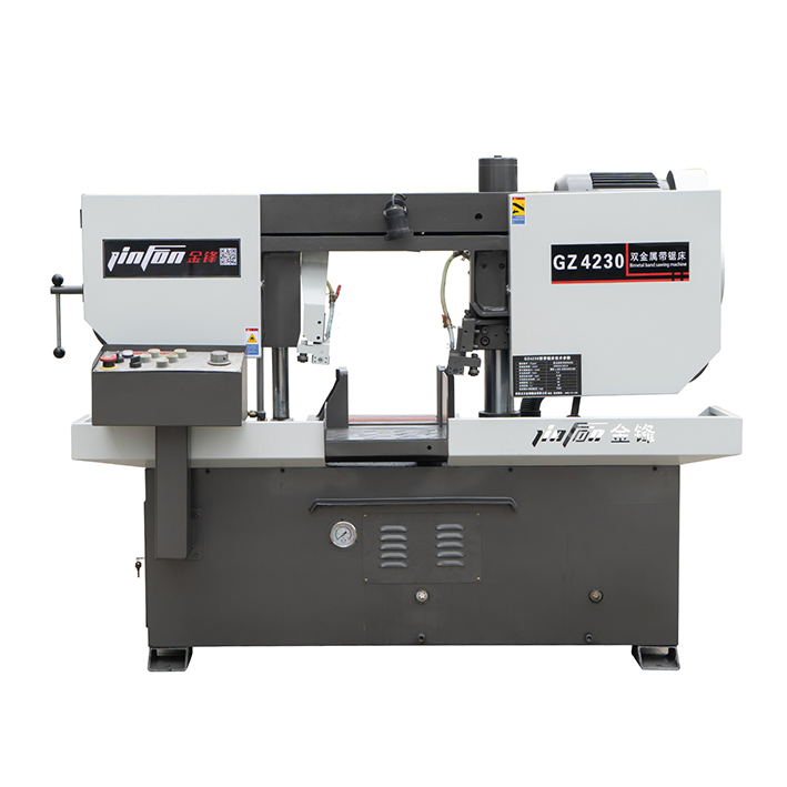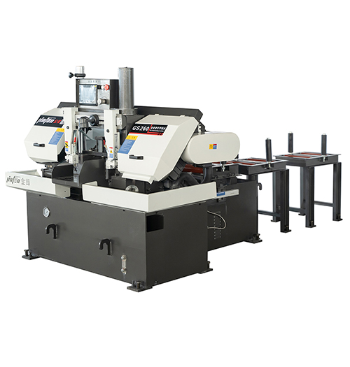 金锋带锯床分为半自动带锯床或全自动带锯床,半自动锯床配备按钮和无极调速,方便快捷。全自动锯床又称数控锯床,配备高敏度彩色触摸屏,精度高,操作直观便捷,新手也能切割0失误。还采用PLC控制系统,可设置一组或几组连续切割,适用于批量生产的企业。